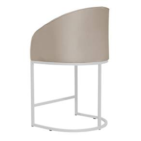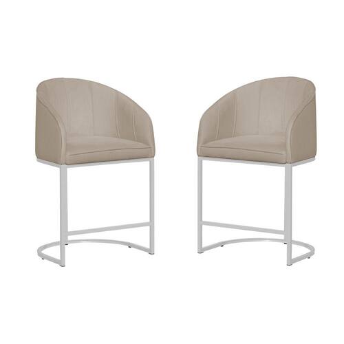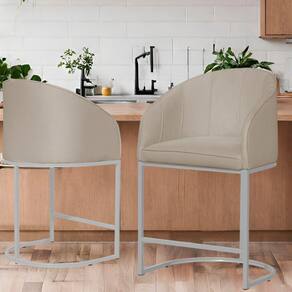 Kit 02 Poltronas Banqueta Mia Estofada Tecido Em Suede Base Metal Branco - Estopar - Bege