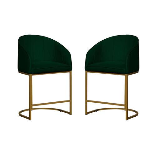 Kit 02 Poltronas Banqueta Mia Estofada Tecido Veludo Base Metal Dourada - Estopar - Verde