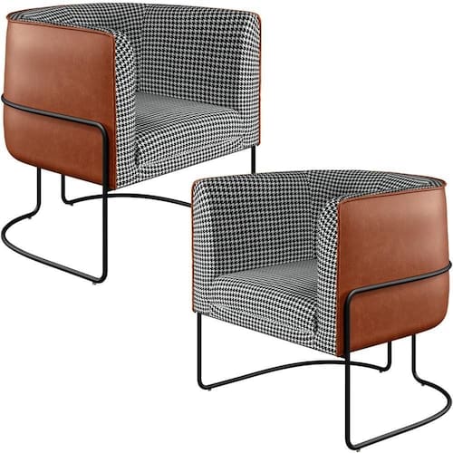 Kit 02 Poltronas Decorativa Fixa Base Aço Preto Betina D02 Pied Poule Corano Camel - Lyam Decor