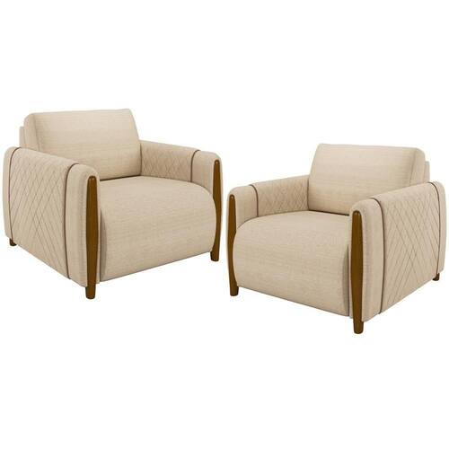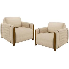 Kit 02 Poltronas Para Sala De Estar Pés De Madeira Base Fixa Flora M03 Linho Bege - Lyam Decor A Poltrona Flora promete marcar com elegancia e versatilidade á presença em diversos estilos de decoracao. O modelo certo é essencial para o bom funcionamento dos cômodos da casa, por isso, um sofá bem estruturado é mais do que necessário na sala de estar! O design aconchegante se destaca junto aos pés madeirados e o revestimento em linho! Extremamente elegante, que transmite a nobreza que ele precisa! Tudo isso para gerar conforto para você e sua família em uma peça única feita com todo cuidado e observada nos detalhes para superar as suas expectativas! Adquira o seu! Dimensões do produto (L x A x P) 98 x 74 x 88 cm Características: Estrutura em madeira de reflorestamento, imunizada contra mofo. Revestimento em Linho na cor Bege. Encosto fixo almofadado com fibras e flocos com manta acrílica e assento com espuma D-26. Pés em madeira tingida. Acabamento em Kami. Suporta até 120 kg por assento. - Por se tratar de estofado as medidas podem ter uma pequena variação de até 3 cm. - A tonalidade do produto real poderá ter ligeira variação devido o lote de tecidos. Produto entregue montado. Indicado para uso residencial, sua limpeza deve ser feita com pano umedecido em água limpa, sem esfregar, não utilizar produtos abrasivos, desengordurantes, álcool ou solvente. Nunca sentar nos braços ou encosto do produto. Manter em lugar livre de umidade e/ou exposição direta ao sol. Observações importantes: - Produto para uso residencial em ambiente interno, não devendo ficar exposto diretamente ao sol, calor e umidade excessivos. - Pode haver alguma diferença de tonalidade entre a imagem e o produto real, por conta do tratamento de imagens e a calibração de cores do seu monitor. - As imagens são meramente ilustrativas, não acompanham objetos de decoração e eletrônicos. - Ao receber a mercadoria, o cliente deve verificar as condições da embalagem, caso haja alguma não assine o comprovante de recebimento. - Montagem, desmontagem e outras instalações serão de responsabilidade do cliente. Não nos responsabilizamos, no ato da , por subir escadas/elevadores ou pelo transporte por guincho em apartamentos. Eventuais despesas são de responsabilidade do comprador. - Confira as dimensões do produto e certifique-se de que passará normalmente por supostos elevadores, portas, escadas e/ou corredores de sua residência. NA