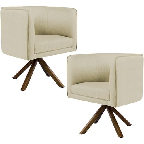 O Kit 02 Poltronas Decorativa Base Giratória de Madeira Betina D02 Linho Bege C-129 - Lyam Decor exala formosura e elegância! Excelente opção para dispor em sua sala de estar ou espera, recepção, hall de entrada, dormitório, qualquer área de circulação ou antessala entre um cômodo e outro, as possibilidades de combinação são infinitas. Seu protagonismo é notório, sem sombra de dúvidas é perfeita para qualquer ambientação que desejar colocá-la.