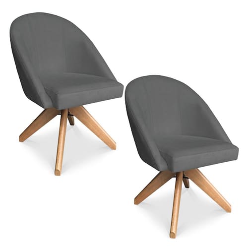 Kit 02 Poltronas Cadeira Giratória Bela Veludo Base de Madeira - Pallazio - Grafite