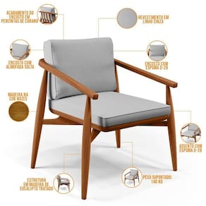 Com sua resistente estrutura em madeira, na cor nozes, o encosto com percintas em corano com almofada solta e o assento revestido em linho, deixarão sua decoração ainda mais sofisticada. Oferecendo máximo conforto sem deixar de transmitir todo a magnitude que seu lar merece.