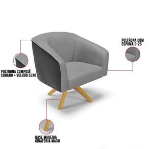 Com uma estética clássica, a poltrona Stella irá deixar seu ambiente com um visual agradável e inovador. Sem dúvida ela será o maior destaque da decoração! Composta por espuma mais densa D-23 no seu encosto e no assento, tornando o móvel super resistente, é revestida em Tecido Corano Preto com Veludo no tom Grafite Luxo, que contribui muito no conforto e no seu bem estar, além de ser super fácil de limpar. Fala aí se não é uma boa escolha para sua sala de estar! Se 1 poltrona já é bom, imagine 2! Adquira já o seu Kit Stella.