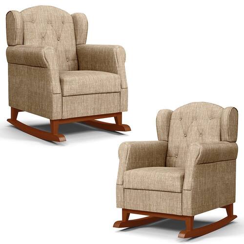 O Kit 02 Poltronas de Amamentação Base de Madeira Balanço Lucy P04 Linho Bege Escuro - Mpozenato é a escolha ideal para as mamães que buscam conforto, beleza e qualidade. Ela possui uma estrutura de madeira de reflorestamento com imunização contra mofo, cupim e microrganismos, garantindo maior durabilidade e resistência. A sustentação do assento e encosto é feita com percintas elásticas que proporcionam mais maciez e ergonomia. A base canoa com balanço permite um movimento suave e relaxante, ideal para ninar o bebê ou descansar após um dia cansativo. A poltrona tem um design moderno e elegante que combina com qualquer ambiente. Ela está disponível em várias cores para você escolher a que mais combina com o seu estilo. Não perca essa oportunidade de ter uma Poltrona de Amamentação e Descanso na sua casa. Você vai se surpreender com o conforto e a qualidade dessa poltrona. Compre já!