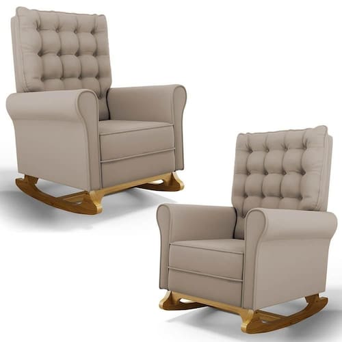 Se está procurando um Kit com conforto, qualidade e sofisticação. Confira o Kit 02 Poltronas de Amamentação e Descanso Base Madeira Balanço Brenda G05 Veludo Bege, da Mpozenato!