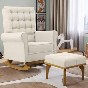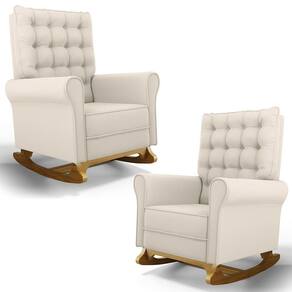 Se está procurando um Kit com conforto, qualidade e sofisticação. Confira o Kit 02 Poltronas de Amamentação e Descanso Base Madeira Balanço Brenda G05 Veludo Creme, da Mpozenato!