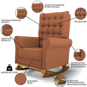 Se está procurando um Kit com conforto, qualidade e sofisticação. Confira o Kit 02 Poltronas de Amamentação e Descanso Base Madeira Balanço Brenda G05 Veludo Terracota, da Mpozenato!