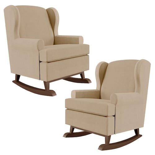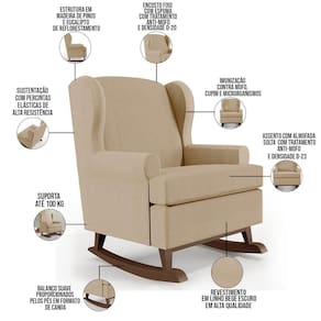 Kit 02 Poltronas De Amamentação Com Balanço Malu Base De Madeira P02 Linho Bege Escuro - Lyam Decor - Bege Médio