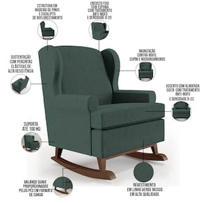 Kit 02 Poltronas De Amamentação Com Balanço Malu Base De Madeira P02 Linho Verde Musgo - Lyam Decor