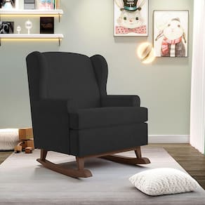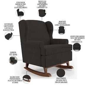 Kit 02 Poltronas De Amamentação Com Balanço Malu Base De Madeira P02 Suede Preto - Lyam Decor