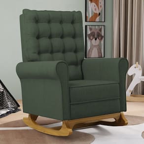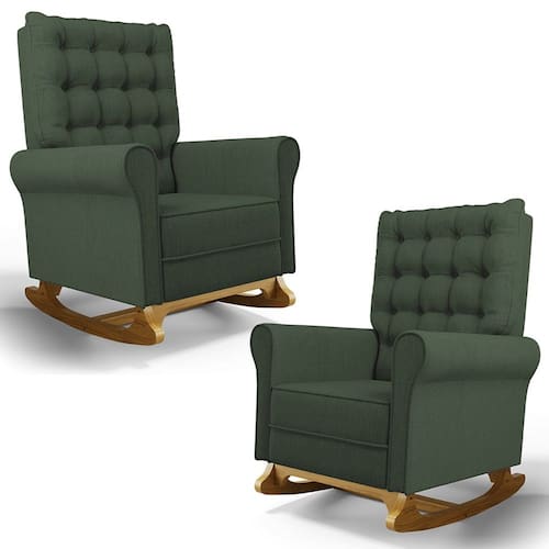 Se está procurando um Kit com conforto, qualidade e sofisticação. Confira o Kit 02 Poltronas de Amamentação e Descanso Base Madeira Balanço Brenda G05 Linho Verde, da Mpozenato!