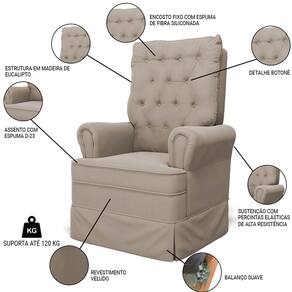 O Kit 02 Poltronas de Amamentação e Descanso Com Balanço Laís G05 Veludo Bege, da Mpozenato, possui várias características que vão tornar esse momento mais confortável e aconchegante!