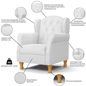 Conteúdo da Embalagem: 2 Poltronas, 8 Pés de Madeira.