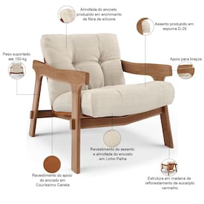 Revestimento do assento e da almofada do encosto em Linho na cor Palha.