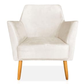 Kit 02 Poltronas Decorativa Julia Veludo Bege Pés Palito Castanho - Pallazio