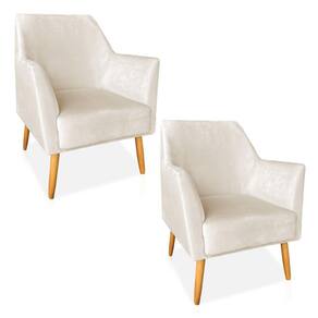 Kit 02 Poltronas Decorativa Julia Veludo Bege Pés Palito Castanho - Pallazio