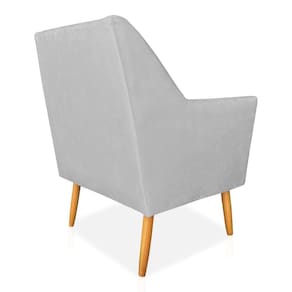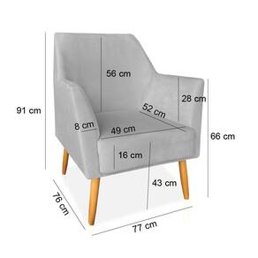 Kit 02 Poltronas Decorativa Julia Veludo Cinza Pés Palito Castanho - Pallazio