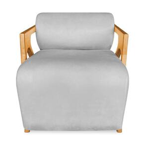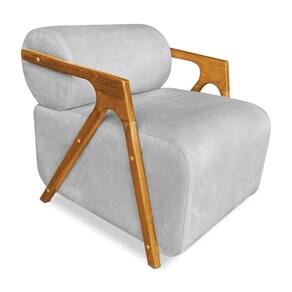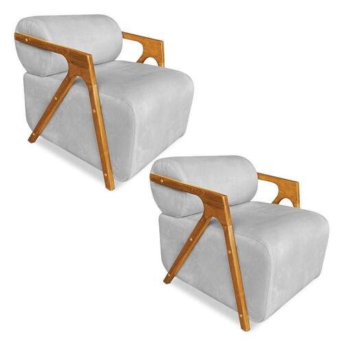 Kit 02 Poltronas Decorativa Marselha Veludo Cinza Base De Madeira - Pallazio