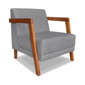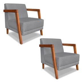 Kit 02 Poltronas Decorativa Natália Linho Base em Madeira Castanho - Pallazio - Grafite