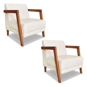 Kit 02 Poltronas Decorativa Natália Linho Natural Base Em Madeira Castanho - Pallazio