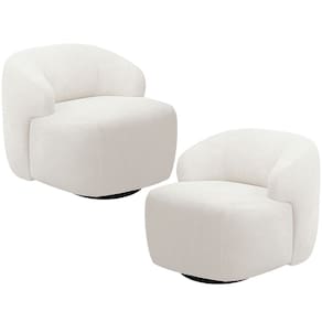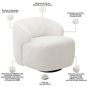 Kit 02 Poltronas Decorativa Orgânica Giratória Para Sala Living Barolo L06 Bouclê Branco - Lyam Decor