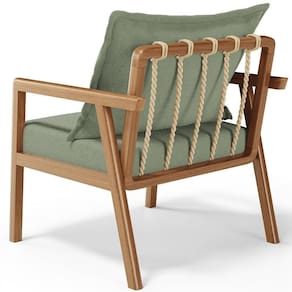 Encosto com almofada solta com enchimento em fibra, e corda sisal.