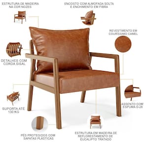 O Kit 02 Poltronas Decorativa Para Sala de Estar e Living Alícia B04 Couríssimo Camel é perfeito para adicionar um toque de estilo moderno a sua sala de estar. Com sua estrutura em madeira maciça envernizada, essa poltrona de madeira traz durabilidade e elegância para o ambiente. O assento estofado e revestido com materiais de qualidade oferece conforto excepcional, permitindo que você relaxe com estilo. Já o design moderno combina perfeitamente com qualquer tipo de decoração, tornando-a uma escolha versátil para qualquer sala de estar, living, recepção, escritório e diversos outros ambientes. A cereja do bolo fica por conta do detalhe da corda trançada no encosto com a almofada sobreposta, um charme à parte.