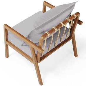 Encosto com almofada solta com enchimento em fibra, e corda sisal.