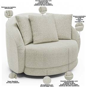 Indicado para uso residencial, sua limpeza deve ser feita com pano umedecido em água limpa, sem esfregar, não utilizar produtos abrasivos, desengordurantes, álcool ou solvente. Nunca sentar nos braços ou encosto do produto.