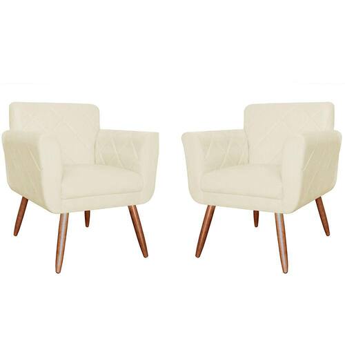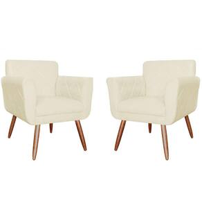 Kit 02 Poltronas Decorativa Sala Recepção Em Tressê Isabella Suede Marfim - LM DECOR - Bege Claro