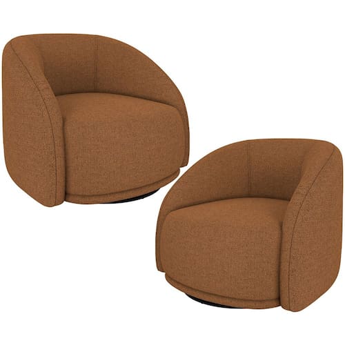 Kit 02 Poltronas Decorativas Giratória Angelina M03 Linho Telha - Lyam Decor - Laranja
