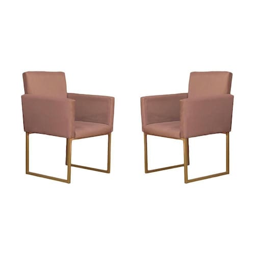Kit 02 Poltronas Decorativas Klara Pés Base Ferro Dourada