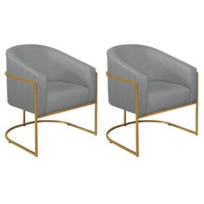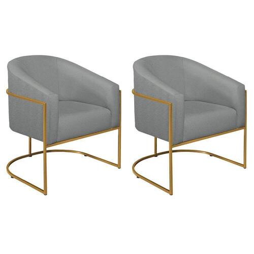 Kit 02 Poltronas Decorativas Sala De Estar Recepção Luiza Base De Ferro Dourado Suede - Doce Sonho Móveis Cor Cinza