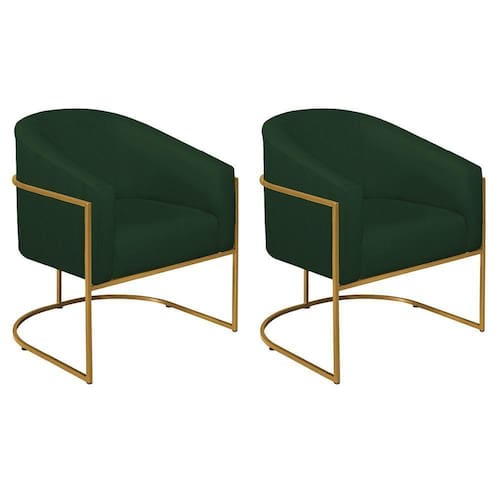 Kit 02 Poltronas Decorativas Luiza Base De Ferro Dourado Suede - Doce Sonho Móveis Verde