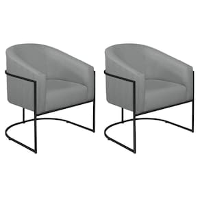 Kit 02 Poltronas Decorativas Sala De Estar Recepção Luiza Base De Ferro Preto Suede - Doce Sonho Móveis Cor Cinza