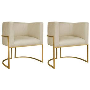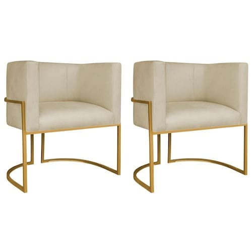 Kit 02 Poltronas Decorativas Luna Base De Ferro Dourado Suede Cor Bege
