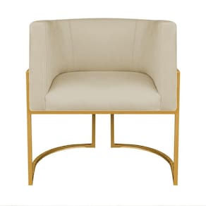 Kit 02 Poltronas Decorativas Luna Base De Ferro Dourado Suede Bege - Blush