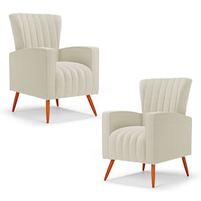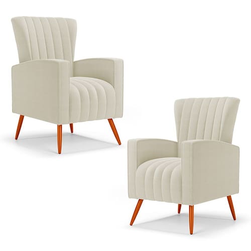 Kit 02 Poltronas Decorativas Melody com Pés Palito Bouclê Bege - Abmaza