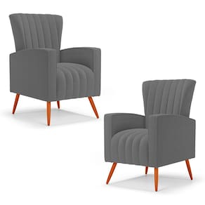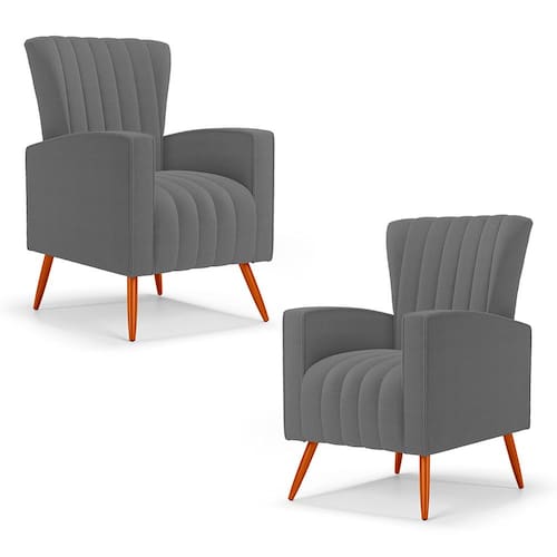 Kit 02 Poltronas Decorativas Melody com Pés Palito Bouclê Cinza Escuro - Abmaza - Grafite