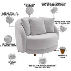 Indicado para uso residencial, sua limpeza deve ser feita com pano umedecido em água limpa, sem esfregar, não utilizar produtos abrasivos, desengordurantes, álcool ou solvente. Nunca sentar nos braços ou encosto do produto.