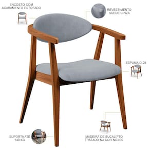 Caso você esteja buscando conforto, realce e praticidade, o Kit 02 Poltronas Decorativa Para Sala De Estar Jantar Cecília L02 Suede Cinza - Lyam Decor vem para superar todas as suas expectativas! Garante muita comodidade otimizando o espaço e harmoniza com qualquer estilo decorativo facilmente. Podendo ser utilizada em sala de estar, jantar, cozinha, recepção ou mesmo em escritório, dará um toque especial na decoração. Com uma proposta minimalista que suavizará o ambiente sem passar despercebida oferece mais leveza e receptividade a sua casa. Cabe mencionar ainda a estrutura em madeira na cor nozes que contrasta lindamente com o encosto e assento estofados, bastante aconchegantes e resistentes com excelente qualidade. Você e seu lar merecem o melhor, adquira já o seu!
