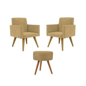 Kit 02 Poltronas Decorativas + Puff Decorativo Redondo Sala Cor:capuccino - Bege Claro