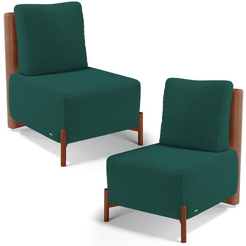 Imagine-se desfrutar de máximo conforto e aconchego, imersos na nossa nova Poltrona Hungria, que é a personificação da inovação! Seus pés em madeira garantem estabilização, além de dar o toque rústico que fica um show no ambiente! Seu estofamento, e almofadas foram cuidadosamente selecionados para trazerem elegância e comodidade. Pode ser disposta em vários ambientes como livings, sala de estar, halls de entrada e quartos, traz sua essência ao cômodo, oferecendo uma sensação de bem estar para todas as horas. Permita-se recarregar as energias com graciosidade, adquira já a sua! Dimensões do produto (L x A x P) 58 x 88 x 70 cm Medidas Internas: Altura do chão ao encosto: 76 cm Largura do assento: 56 cm Altura do assento: 30 cm Altura da almofada: 43 cm Profundidade do assento: 62 cm Altura do chão ao assento: 45 cm Espessura da almofada: 15 cm Largura da almofada: 45 cm Características: Estrutura em Madeira de Eucalipto Vermelho tratado. Revestimento do encosto em Couríssimo na cor Camel do assento em Bouclê na cor Verde, de alta qualidade. Almofada Solta, com enchimento de fibra siliconada. Assento com espuma D-26. Suporta até 120 kg. Pés em Madeira com Acabamento Envernizado. - Por se tratar de estofado as medidas podem ter uma pequena variação de até 3 cm. - A tonalidade do produto real poderá ter ligeira variação devido o lote de tecidos. Observações importantes: - Produto para uso residencial em ambiente interno, não devendo ficar exposto diretamente ao sol, calor e umidade excessivos. - Pode haver alguma diferença de tonalidade entre a imagem e o produto real, por conta do tratamento de imagens e a calibração de cores do seu monitor. - As imagens são meramente ilustrativas, não acompanham objetos de decoração e eletrônicos. - Ao receber a mercadoria, o cliente deve verificar as condições da embalagem, caso haja alguma não assine o de . - Montagem, desmontagem e outras instalações serão de responsabilidade do cliente. Não nos responsabilizamos, no ato da , por subir escadas/elevadores ou pelo por guincho em apartamentos. Eventuais despesas são de responsabilidade do comprador.- Confira as dimensões do produto e certifique-se de que passará normalmente por supostos elevadores, portas, escadas e/ou corredores de sua residência Color: Verde | ColorFamily: Verde | ColorSimple: Verde | ColorSupplier: Verde | Material: Madeira e Espuma | MaterialFamily: Madeira | Model: Hungria | OriginCountry: | OriginState: PR | ProductContents: 02 Poltronas | ProductHeight: 88 cm | ProductInstructions: Produto para uso em ambiente interno, nao devendo ficar exposto ao sol, calor e umidade excessivos. | ProductLength: 70 cm | ProductWarranty: 90 dias após o do produto | ProductWeight: 24 kg | ProductWidth: 58 cm | SizeDescription: Altura: 88 cm Largura: 58 cm Profundidade: 70 cm | SupplierSimpleName: Kit 02 Poltronas Decorativas Sala de Estar Living Hungria L02 Couríssimo Camel Bouclê Verde - Lyam