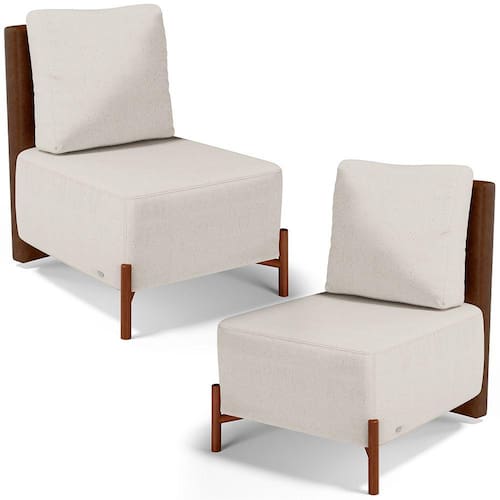 Kit 02 Poltronas Decorativas Sala de Estar Living Hungria L02 Couríssimo Marrom Linho Cru - Lyam - Off White