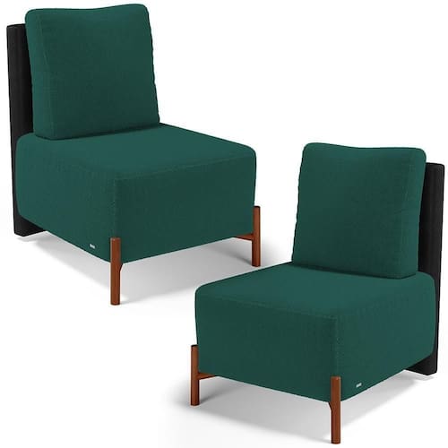 Kit 02 Poltronas Decorativas Sala De Estar Living Hungria L02 Couríssimo Preto Bouclê Verde