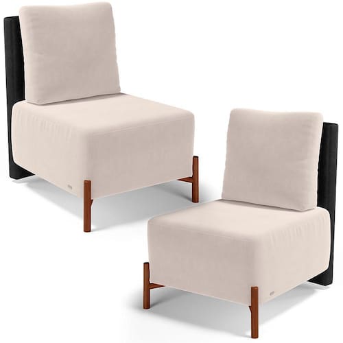 Kit 02 Poltronas Decorativas Sala de Estar Living Hungria L02 Couríssimo Preto Suede Bege - Lyam