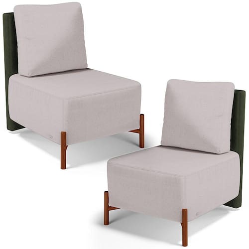Kit 02 Poltronas Decorativas Sala de Estar Living Hungria L02 Couríssimo Verde Linho Bege - Lyam
