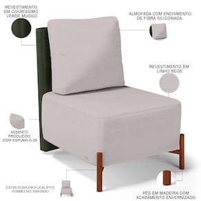 Revestimento do encosto em Couríssimo na cor Verde do assento em Linho na cor Bege, de alta qualidade.