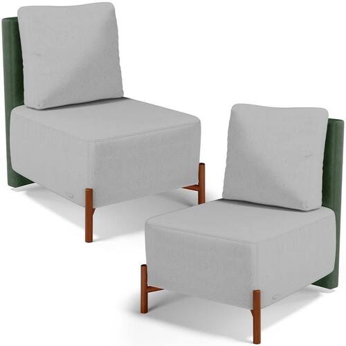 Kit 02 Poltronas Decorativas Sala De Estar Living Hungria L02 Couríssimo Verde Linho Cinza - Lyam